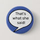 That's what she said, quote, funny 6 cm round badge