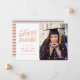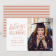 This modern single photo graduation announcement features hand lettering and text in peach on a white background. The right side of the announcement has space for a personal photo.