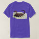 I give wanted to give this a 4 instead of a 5 because these Basic DARK T0shirts run unexpectedly SLIM or Narrow. Which is great if you do not have a potbelly, but I have a paunch. It isn't the shirt's fault that I've got a beer belly. The design and shirt itself is a quality cotton shirt. The color is more of a deep purple, but still a very pretty color. The Basic DARK T-shirts run a bit SLIMMER than the Basic Ts. The neck is a fraction narrower (or seems to be narrower) also. I'm a paunchy middle-aged woman and my neck is 12 inches (31cm) thick and the neckline fell about the same as in the photo of the man, and I had the desire to tug it a bit. So if you're a thick necked man or like loose shirts, be aware these are slimmer shirts. Once I get rid of my lockdown paunch it'll look great. The shirt washed well in cold water with no apparent bleeding. We don't have a dryer, so it hung dry. Did not shrink. Love the colors and the design. The design looks smaller on my shirt than it does on the model on-line. But still, it looks good on the shirt. The printing looks as it does on the model, just the size seems fractionally smaller. Washed garment in cold water, hung dry and design appeared unaffected.