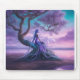Under the lush violet canopy of a towering oak tree, a curious sight unfolds. A lone mousepad, its vibrant surface depicting a majestic mountain range and a crystal-clear lake, rests peacefully on the soft grass. But there's something else lurking beneath the mousepad, something otherworldly.