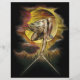 William Blake originally used this illustration of his character Urizen as the frontispiece to his Europe a Prophecy. In this work, Urizen, appearing as a god or diety of mystical nature, crouches holding a compass over the void below.