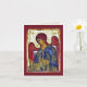 The Archangel Gabriel Christian Biblical religious scene Christmas greeting card. The Angel Gabriel, who announced the coming birth of Christ to Mary, shown with crimson red wings, depicted in rich, vibrant colours. The artwork dates to the Byzantine period of early Christian history. A perfect Christian Christmas greeting card steeped in faith and tradition.