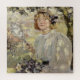 This design features a painting by the Scottish artist Bessie MacNicol (1869–1904), who was associated with the Glasgow School of art. It depicts a young woman in a white dress as she sits gracefully beneath the boughs of an apple tree. She is holding a bouquet of flowers in her left hand and a lady's mirror in her right hand. Her hair is chestnut brown and it falls down to the nape of her neck; she has some flowers in her hair too. She is smiling at the viewer with a simple and carefree joy. The leaves of the apple tree are green behind her. It is a bright summer's day and she appears to be sitting on the grass. The original artwork was painted by Bessie MacNicol in 1899.