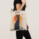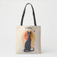 This tote bag features a black cat decorated with Zentangle lines, with an orange sun behind it, and superimposed on a keyhole shape with random orange chips. An unusual design, reminiscent of Aubrey Beardsley's work, and perfect for anyone who loves cats.