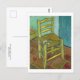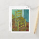 A fine art postcard with the post-impressionist painting, Van Gogh's Chair (1888), by the Dutch artist Vincent van Gogh (1853-1890). A still life of a solitary wooden chair with a woven seat placed on a red tile floor.