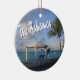 The Bahamas commemorative ornament to celebrate happy memories of your tropical Caribbean vacation. Photo of a lovely beach scene with a cabana and palm tree, along with The Bahamas in fun typography. Choose your ornament shape.