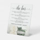 This tabletop sign is a great way to let your guests know the bar menu at your wedding reception. It features a simple yet elegant design with a photo of a single long-stemmed ivory, white, or cream coloured rose reflecting in a pool of water with waves and ripples. The title is written in elegant script calligraphy and reads: The Bar. There is space for your drinks menu as well as the names of the couple and wedding date.
