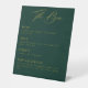 Modern minimalist bar list, wedding sign. Trendy typography design style template gold text on emerald green colour background.