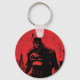 Comic book style illustration of Batman standing atop a gargoyle in Gotham City.