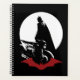 Batman standing in silhouette by the Batcycle with Bat Logo.