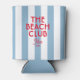 The Beach Club can cooler is perfect for your group beach trip or get together. Blue cabana stripes with French red custom beach club lettering. Personalise with the details of you beach trip... year and beach destination. Perfect for a family or friends beach get together or beach club bachelorette or as a memento for a past trip. Matching accessories available in The Beach Club French Red Blue Cabana Stripe Collection.