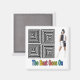 Square magnet with an image of grey and black Op Art, a female dressed in black and white Mod fashion, and the words "The Beat Goes On" below in rainbow letters. See the entire Disco 70s Magnet collection in the PARTY FAVORS section.