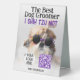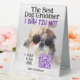 The Best dog groomer Shih Tzu Not Logo QR code Table Sign. Cool cute posing Shih tzu with custom text. Customise and personalise fun dog grooming Business Supplies. Funny adorable cuddly white brown female dog with big black nose, top knot pony tail and colourful sun glasses on her head.