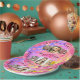 Pink birthday theme paper plate with photos and "The Best Ever", child's name and "Have a Happy Birthday!" Choose the personalise option to download your photos into the templates. Design has a special colour effect with various orb dots adding depth, colour and richness to the context. A beautiful design for your beautiful, good girl! HAMbyWhiteGlove aka HAMbyWG.