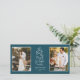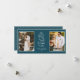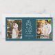 Playful script "The Best is yet to come! (hopefully)", funny quote, holiday photo card in teal. Scrapbook style photo frames and doodle dots and stripe pattern backing.