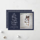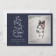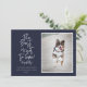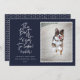 Playful script "The Best is yet to come! (hopefully), funny quote, holiday photo card in navy blue. Scrapbook style photo frame and doodle dots and stripe pattern backing.