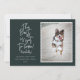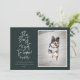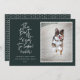 Playful script "The Best is yet to come! (hopefully), funny quote, holiday photo card in green. Scrapbook style photo frame and doodle dots and stripe pattern backing.