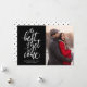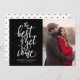 This New Year holiday photo card features the phrase "the best is yet to come" in white on a black background with your custom greeting below it. Your photo is displayed to the right. The back is a black and white pattern.