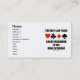 Bridge players and bridge teachers will enjoy introducing themselves to others with these wry bridge humour business cards featuring the saying that is often heard at the bridge table: "The Best Laid Plans Can Be Discarded In The Game Of Bridge". Make others do a double-take about the world of bridge with these business cards featuring the four card suits and this tongue-in-cheek bridge truism!