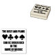 If you understand the nature of the game of bridge, you'll enjoy this bridge humour rubber stamp featuring the wry duplicate bridge saying "The Best Laid Plans Can Be Discarded In The Game Of Bridge". Comes with the four card suits. Make others do a double-take at what goes on in the game of bridge with a dose of sound humourous bridge advice with this rubber stamp!