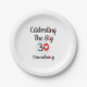 Paper Plates for a party for some one celebrating the 30th birthday. Black and red letters "Celebrating the Big 30"