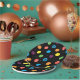 This fun Big Bang Theory pattern features colourful icons on a black background.