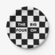 The Big Four Oh Black and White Chequered Pattern Paper Plate