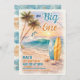 Ride the wave into a sunny celebration with this “The Big One” retro surf beach birthday invitation — perfect for a first birthday, milestone bash, or any age that’s ready to make a splash! This watercolor design features a tropical beach at sunset with surfboards in the sand, seashells, ocean waves, swaying palm trees, a dolphin leaping through the surf, and a chill seagull catching the breeze. Hand-painted in vibrant turquoise and burnt orange hues, it brings laid-back coastal vibes.