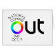 A bright colour wheel 'O' in the big OUT of National Coming Out Day, October 11, catches the eye. Gay, queer, lesbian, bisexual, transgender, and straight ally - this is our world, too. Come out!