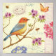 © Daphne Brissonnet / Wild Apple.  A colourful bird perched on a branch. There are flowers and butterflies on the image as well.