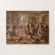 11” x 14” jigsaw puzzle with an image of “The Birth Of Old Glory,” a painting from 1908 that depicts Betsy Ross showing General George Washington the first American flag. The artist, Edward Percy Moran (1862-1935), was an American artist known for his scenes of American history. See the entire Independence Day Puzzle collection under the HOME category in the HOLIDAYS section.