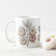 Featuring a surreal and innovative design, this mug depicts a variety of delicious doughnuts – covered in chocolate, pink glass, and colourful sprinkles – dangling like fruit from a tree branch drawn in fine detail. The detailed illustration style inspired by Botanical Art gives this mug a distinct artistic touch that makes it as much a decorative piece as it is a coffee-drinking tool.