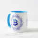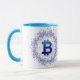 **More than just a mug, it's a conversation starter.** The iconic Bitcoin logo shines in vibrant white against the azure expanse, sparking curiosity and inviting questions. Imagine the intrigue as you sip your morning latte, subtly declaring your digital currency allegiance.