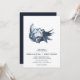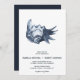Nautical chic wedding invitation features a vintage style hand drawn seashell watercolor illustration in navy blue.