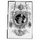 Vintage illustration featuring a skeleton sitting on a rock, legs crossed, with its head resting on one hand while a child trapped inside its ribcage tries to get out. From the 19th century book titled, "Quarles' emblems," circa 1861.