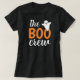 Modern family matching Halloween shirt design features "The Boo Crew" text in orange and white lettering with a little ghost accent. Order for each member of your crew.