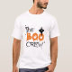 Modern family matching Halloween shirt design features "The Boo Crew" text in orange with a little ghost accent. Order for each member of your crew.