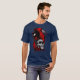 I give wanted to give this a 4 instead of a 5 because these Basic DARK T0shirts run unexpectedly SLIM or Narrow. Which is great if you do not have a potbelly, but I have a paunch. It isn't the shirt's fault that I've got a beer belly. The design and shirt itself is a quality cotton shirt. The color is more of a deep purple, but still a very pretty color. The Basic DARK T-shirts run a bit SLIMMER than the Basic Ts. The neck is a fraction narrower (or seems to be narrower) also. I'm a paunchy middle-aged woman and my neck is 12 inches (31cm) thick and the neckline fell about the same as in the photo of the man, and I had the desire to tug it a bit. So if you're a thick necked man or like loose shirts, be aware these are slimmer shirts. Once I get rid of my lockdown paunch it'll look great. The shirt washed well in cold water with no apparent bleeding. We don't have a dryer, so it hung dry. Did not shrink. Love the colors and the design. The design looks smaller on my shirt than it does on the model on-line. But still, it looks good on the shirt. The printing looks as it does on the model, just the size seems fractionally smaller. Washed garment in cold water, hung dry and design appeared unaffected.