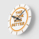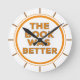 Great quality clock and very well made. Just what I was looking for to finish my hall off. Looked in loads of other websites and eventually found exactly what I was looking for at Zazzle. Designe and colour is perfect. I just love it. Bought the medium size and fits well for where I was placing it.
