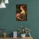 The painting balances romance with restraint. Waterhouse lets texture do much of the storytelling, from the velvety petals to the shimmering fabric of her dress, where greens and blues mingle with earthy golds. The overall mood is tender and contemplative, like a moment suspended between perfume and silence, inviting you to imagine the unspoken thought behind her calm expression.