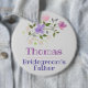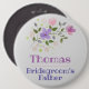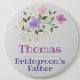 Introducing the Bridegroom's Father - a Button Badge with the name and a floral illustration. Wedding identification badge.