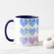 This is a pretty cute mug. The blue hearts go pretty well with colours of the mug, since the colours of the mug are navy blue & white. They pretty much fall in alignment.