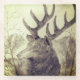 This pencil drawing was transferred to these glass coasters, the drawing is of a bull elk resting in a opening.