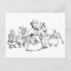 The bunny family is on an excursion. Papa bunny has the luggage. Mama bunny has the umbrella and the children have a bucket, shovel and favourite doll that looks like a golliwog. A vintage illustration from 1910.