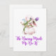 The Bunny Made Me Do It with a bunny holding flowers on an easter card.