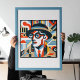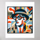 In this striking digital artwork, a businessman is portrayed through a simplified cubist lens, brought to life with a vibrant colour palette. Warm hues of red, orange, and yellow seamlessly contrast with cool blues and greys, creating a visually compelling scene. Geometric shapes form the face, hat, glasses, and suit, highlighting the character’s poised, modern persona. Sharp angles and straight lines reinforce the piece’s strong composition, while key accessories like the hat and glasses distinguish the character with an unmistakable professional flair. This piece invites viewers to contemplate a dynamic blend of tradition and modernity in business.