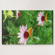 A beautiful butterfly visits a flower garden on this gorgeous jigsaw puzzle