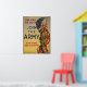 A recruiting poster from World War I showing a soldier standing next to an American flag and blowing a bugle.