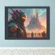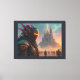The Calling canvas prints show a dystopian world for science fiction fans cyberpunk art fans. The Calling is Steamy Raimon original digital art.