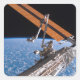 The Canadarm2 and solar array panel wings on the International Space Station featured with airglow.